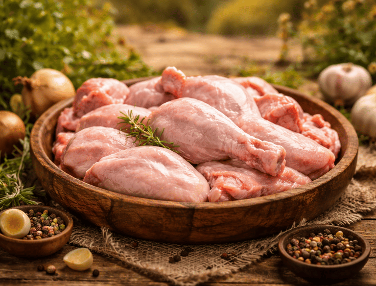 Our desi chicken meat comes from native hens raised with ethical care, natural movement, and nutrient-rich feed.